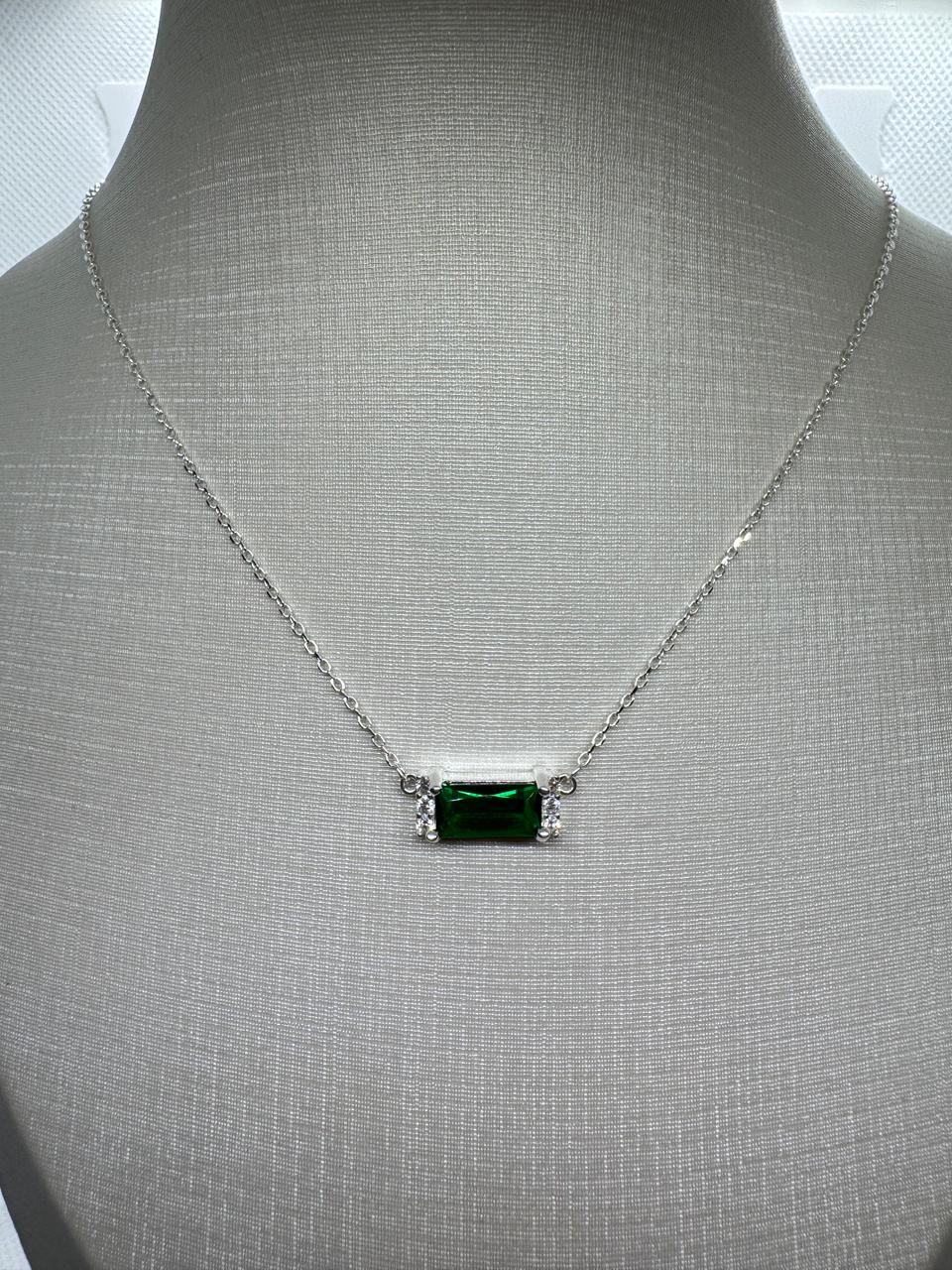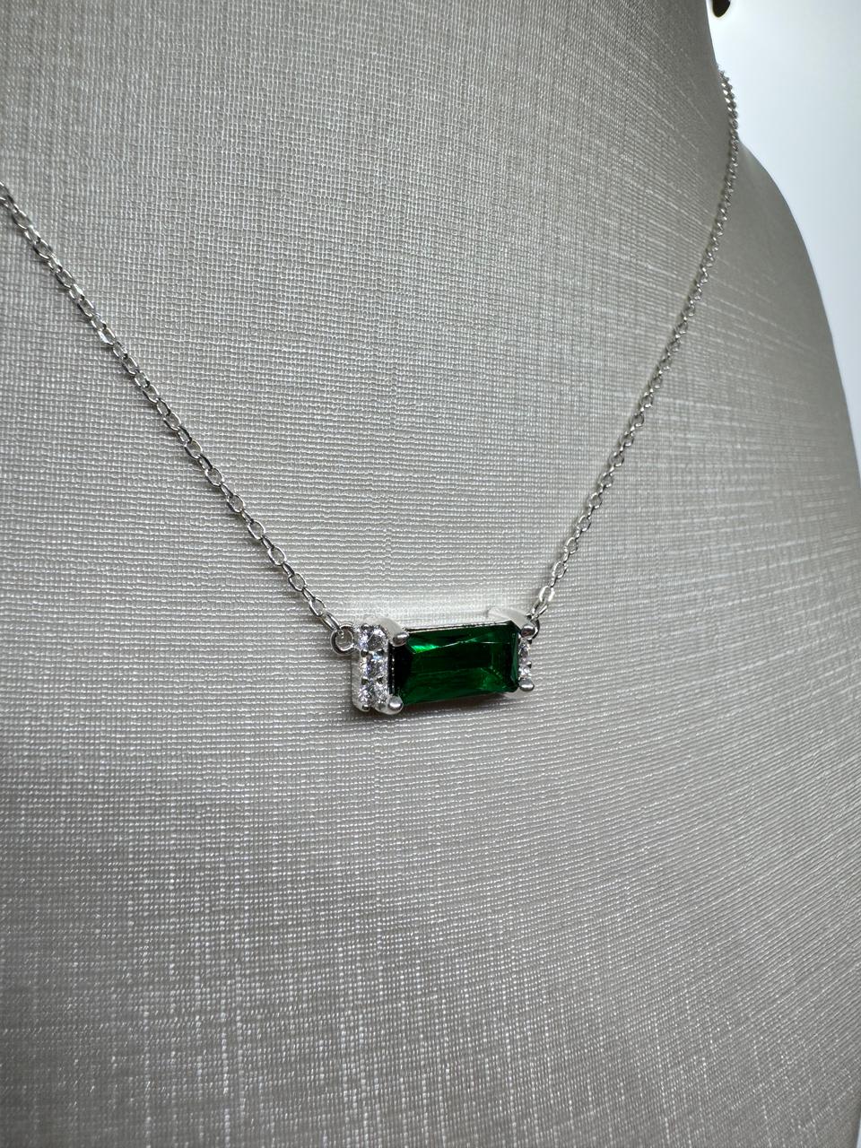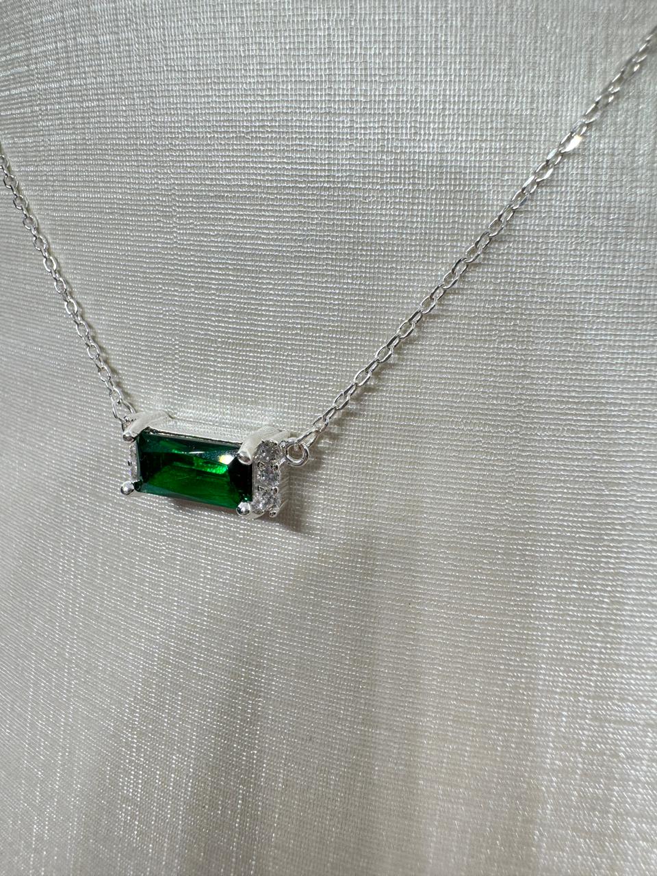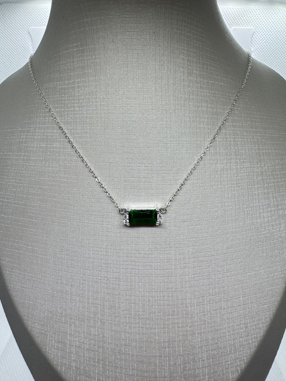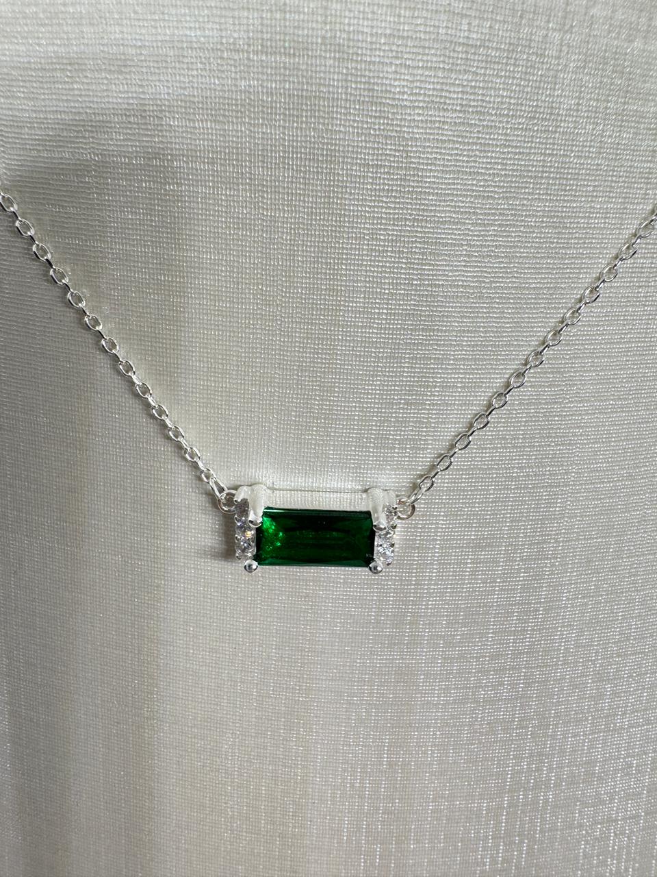 GARGANTILHA PRATA925 COM ZIRCÔNIA CENTRAL VERDE 40CM MAIS 5CM EXTENSOR