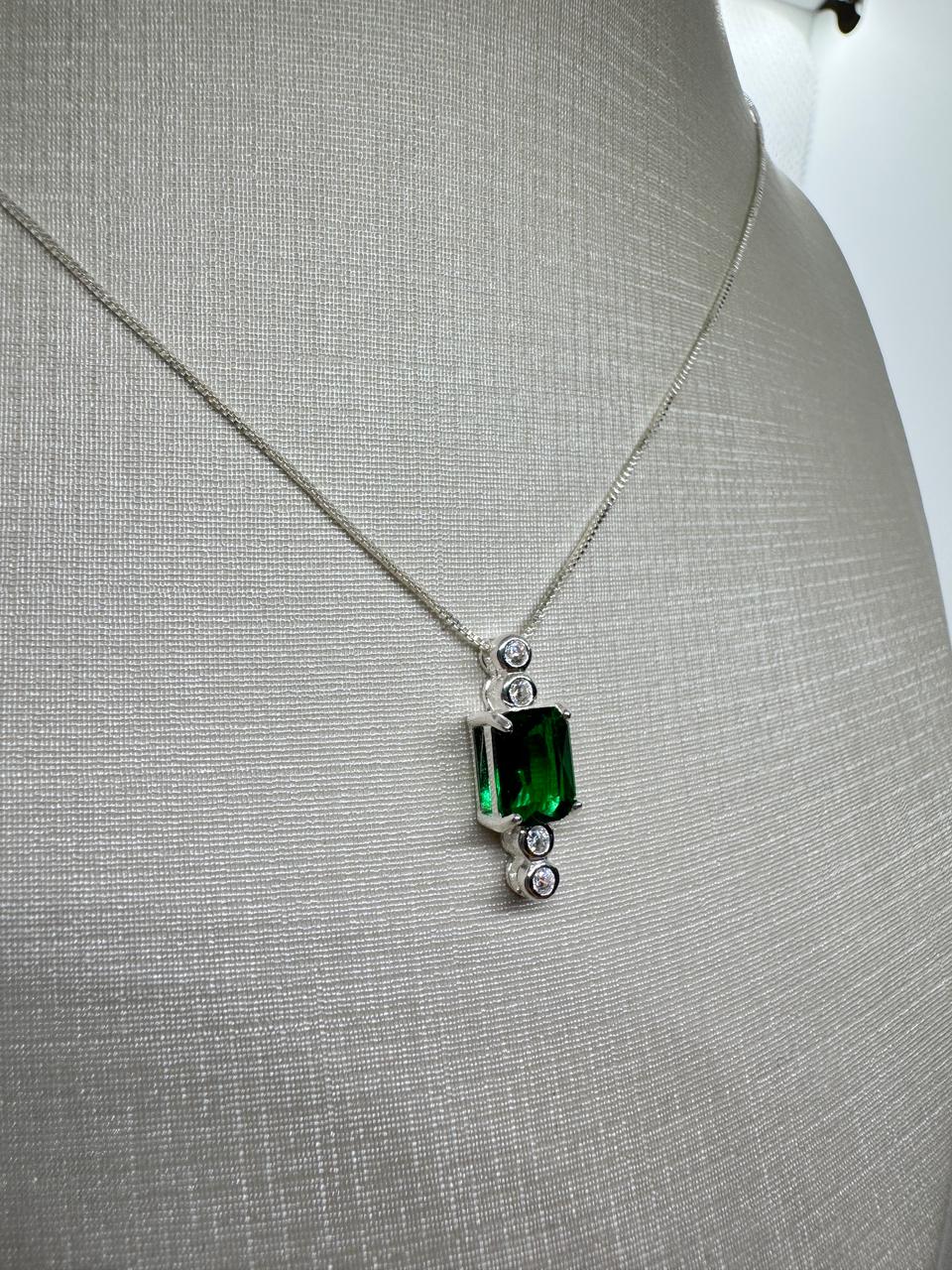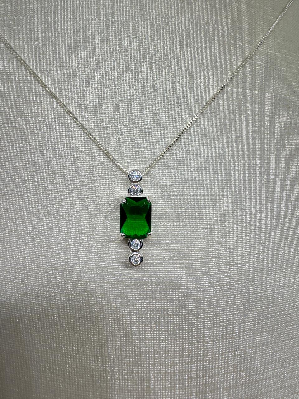 GARGANTILHA PRATA925 ZIRCÔNIA VERDE 45CM